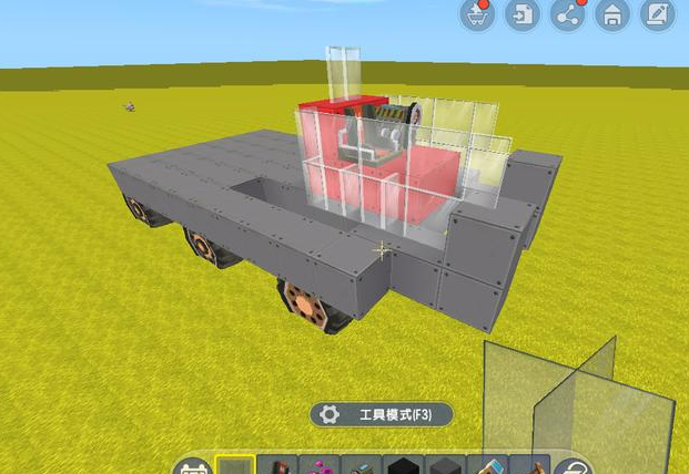 然后在前面建使用红色方块和透明玻璃制作一个驾驶舱 ,尤其是在耕地、还能1次装载30吨的石头,喜欢的小伙伴快去试试吧 。